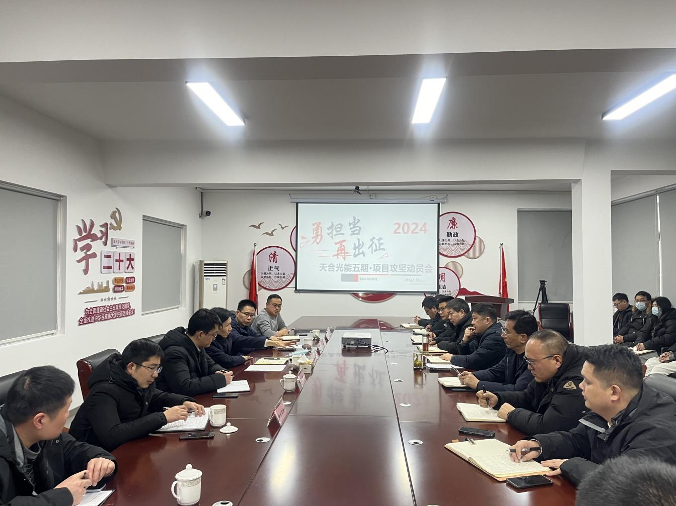 詳細介紹:為有效確保天合光能12GW新一代高效光伏電池項目(五期)扎實推進,進一步增強公司全體人員的緊迫感、壓力感與責任感,堅定項目攻堅信心與決心。1月26日下午,康嘉實業(yè)召開項目攻堅動員大會,集團公司黨委副書記、董事、總經理周學兵,黨委委員、副總經理陳毅,融資部、財務部、審計風控部相關人員及公司全體人員參加。 會上,在公布了攻堅小組成員名單及公司負責人表態(tài)發(fā)言后;...