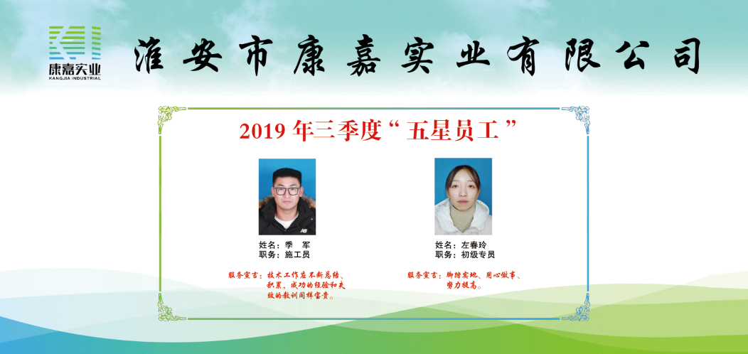 康嘉實業 >> 首頁 >> 公司概況 >> 2019年三季度“五星員工”