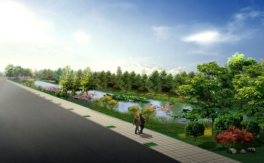 蘇北灌溉總渠-規劃金湖至馬壩高速公路水塘溝渠段效果圖