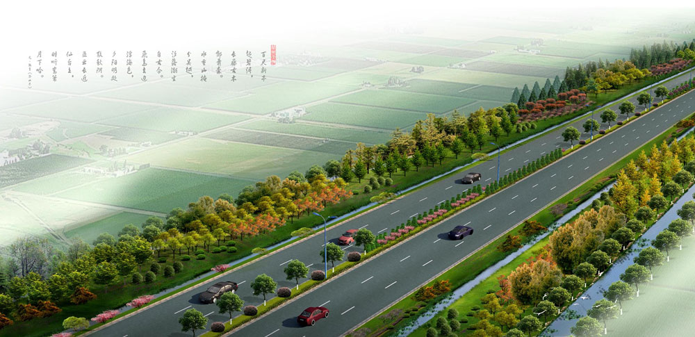 蘇北灌溉總渠-規劃金湖至馬壩高速公路農田村莊段效果圖